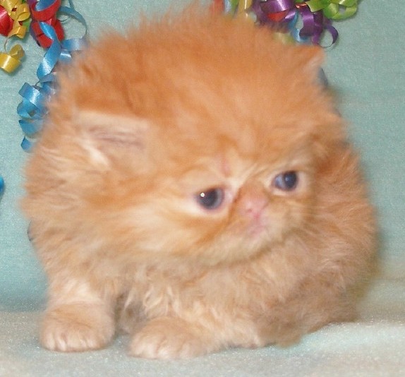 is breeder-show quality This breeder-show flame point boyhas excellant doming with a wonderful smooth top head. His eyes are large and deep blue. He is a strong, stocky, and cobby kitten with short legs as well as a short tail. He will make a great breeder and has show potential.