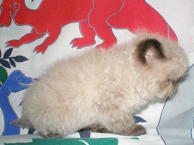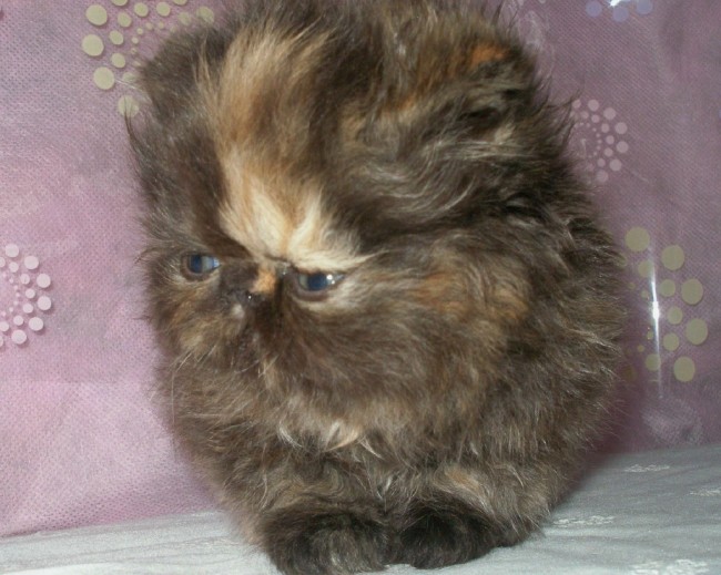 Katsation announces the birth of a new litter of 4 kittens on April 25, 2007 Click on photos below for larger photos! Doll faced Black persian boyDoll faced Black persian boy at 2 weeks. He has some shadings of deep brown mixed with his black. He will have large copper eyes This boy is the quiet one in the litter He is soft spoken and easy going. He will make a wonderful pet. Is purring and playing already. Pet Quality Pet quality tortie point himalayan girlis the smallest in this litter of 4. She also is the loud mouth of the group. Since she was one day of age, she has demanded the most attention, as well as supplemental feedings.... She is about 1/2 the size of her brothers....depending on her growth rate, she may not weigh enough to go to her forever home until she is 16 weeks. She has the doll face look with large deep blue eyes and will be sold as a pet. Seal point himalayan boy